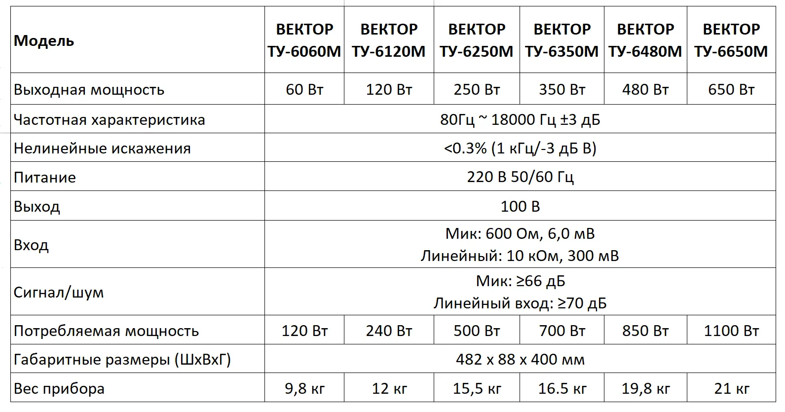 Описали достоинства 6тизонных моделей микшеров-усилителей ВЕКТОР серии ТУ и сравнили модели: