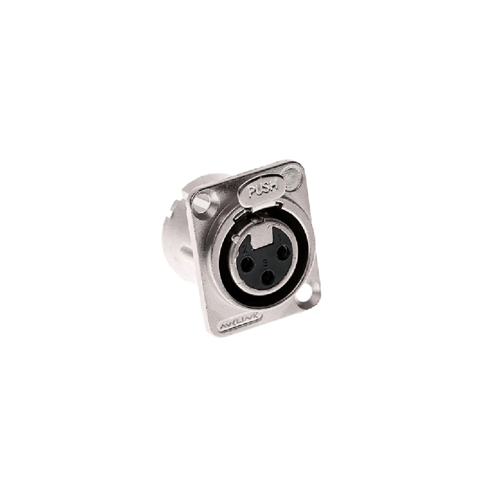 Панельный разъём XLR с 3 контактами и гнездом, тип D. Подходит для подключения аудио- и видеотехники.