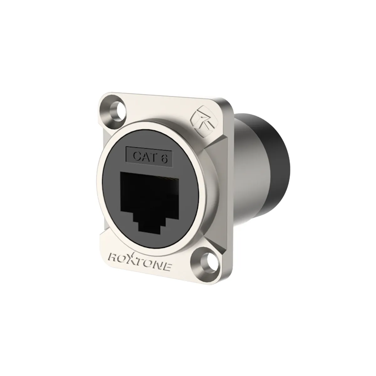 Панельный разъём RJ45 (CAT6) с заземлением от ROXTONE. Произведён в Китае компанией ROXTONE — крупным производителем сценического оборудования и коммутационной продукции.