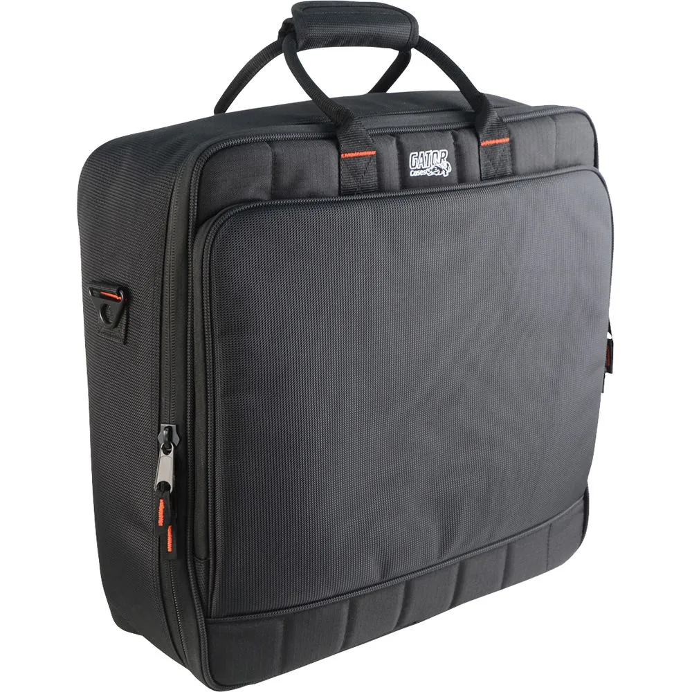Кейс для микшера GATOR G-MIXERBAG-1818 — чёрная сумка из прочного нейлона. Внутри отделана трикотажной тканью, снаружи защищена 10-мм слоем поролона. Есть две ручки и съёмный ремень для переноски. Есть карман на молнии для аксессуаров.