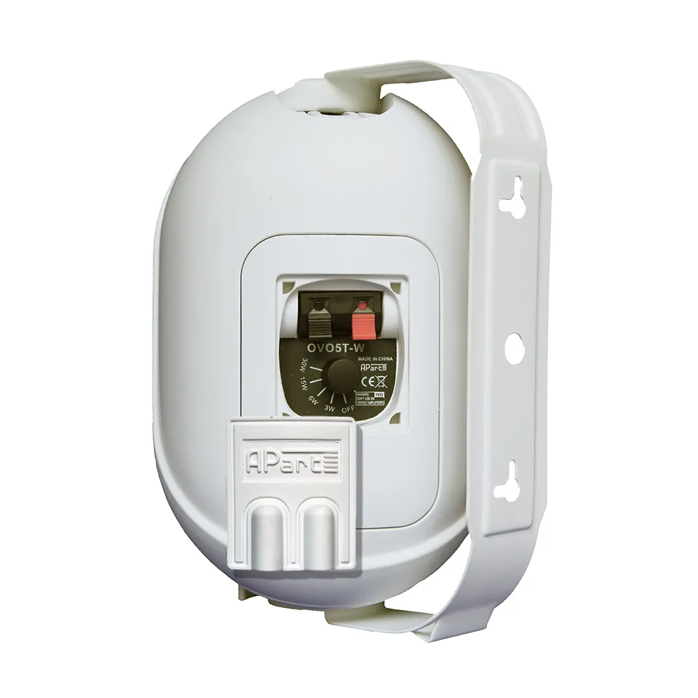 Настенный громкоговоритель предназначен для трансляции фоновой музыки внутри небольших и средних по размеру помещений и легко впишется в любой дизайн и стиль оформления.Акустическая система Apart OVO5T имеет двухполосную конфигурацию и выполнена в корпусе с толстыми стенками из плотного полимера ABS. Благодаря наличию линейного трансформатора с отбором мощности, громкоговоритель Apart OVO5T можно использовать в системах трансляции 100 В.