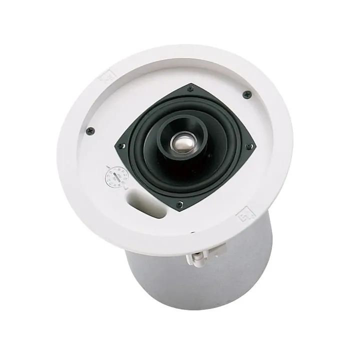 Потолочная встраиваемая акустическая система EVID C4.2D от Electro-Voice пассивного типа применяется для работы в системах оповещения и фонового озвучивания в силу высокого качества воспроизведения. Встроенный трансформатор предоставляет возможность работать как в трансляционных сетях 70/100 В, так и с классическими усилителями в обход трансформатора.Встроенный кроссовер разделяет сигнал по частотам и соответственно направляет на два коаксиально расположенных динамика: 4-дюймовый низкочастотный драйвер и высокочастотный титановый излучатель диаметром 0,75 дюйма, совмещенный с волноводом. Это обеспечивает полноценное звучание на всем воспроизводимом диапазоне частот от 65 Гц до 20000 Гц. Оба излучателя защищены от перегрузки лимитером, а для защиты от механических повреждений закрыты металлической сеткой. Корпус белого цвета оснащен керамическим пожаробезопасным 4-pin входным разъемом. Поставляется с комплектом монтажных элементов для простой и безопасной установки этой акустической системы.