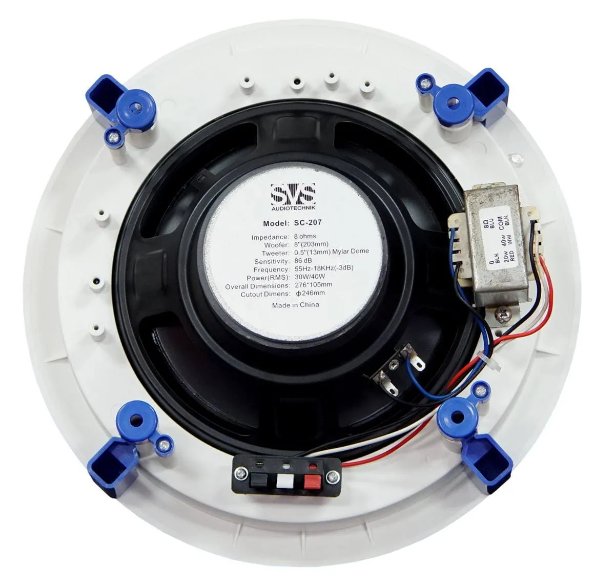 Громкоговоритель потолочный 8", 20/40 Вт, 8 Ом, 70/100В, 88дБ, 55-18000Гц, монтажное отверстие диам 246мм, габариты: диаметр 276мм, высота 105ммСпецификация: