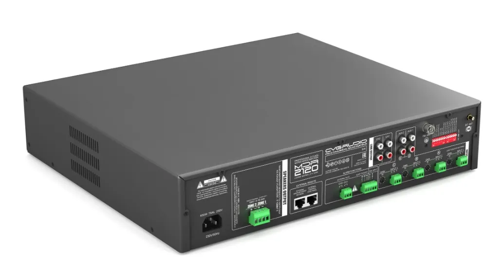 Матричный микшер-усилитель CVGaudio MDA-2120 — профессиональное устройство для создания многозонных звуковых систем. Оно имеет 6 входов, 2 выхода и 2 канала усиления по 120W. Модель оснащена встроенным источником сигнала с USB/microSD, Bluetooth и FM-тюнером. Поддерживает подключение микрофонных консолей и настенных контроллеров. Обеспечивает маршрутизацию сигнала и управление громкостью зон. Подходит для ресторанов, магазинов, фитнес-клубов и других объектов.