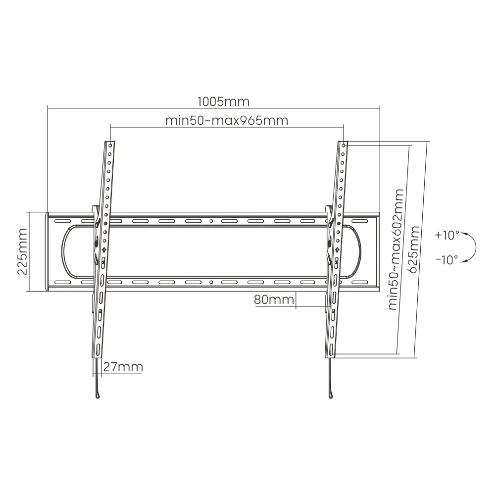 Наклонное крепление Wize Pro T98.Наклонное крепление Wize T98 для дисплеев с диагоналями 60”–120”. Благодаря наличию универсальных крепежных отверстий может использоваться с широким ассортиментом плоских дисплеев. Наклонный механизм позволяет вручную отрегулировать установку дисплея в диапазоне +10°/-10° и получить оптимальный угол обзора.