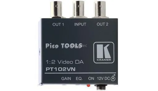 Усилитель-распределитель Kramer Electronics PT-102VN предназначен для обработки композитного видео и SDI сигналов 1:2. Это устройство выполняет функции усиления и распределения входного сигнала на два одинаковых выхода. Кроме того, PT-102VN обладает общим регулятором усиления и отдельным регулятором усиления на частоте 50 МГц, что позволяет компенсировать потери, возникающие в соединительных кабелях. Ширина полосы рабочих частот этого устройства составляет 430 МГц при уровне -3 дБ. Также имеются регуляторы уровня сигнала и АЧХ на частоте 50 МГц. PT-102VN упакован в ультракомпактный корпус Kramer Pico TOOLS™, который позволяет установить до 4-х приборов в один ряд стандартной 19-дюймовой аппаратурной стойки (1U) с использованием опционального адаптера RK-4PT-B.