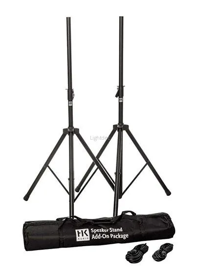- Включает стойки (D 36 мм) под громкоговорители алюминиевые складные 2 шт., спикер кабели длиной 7 м с разъемами Speakon 2 шт. и сумку-чехол для них