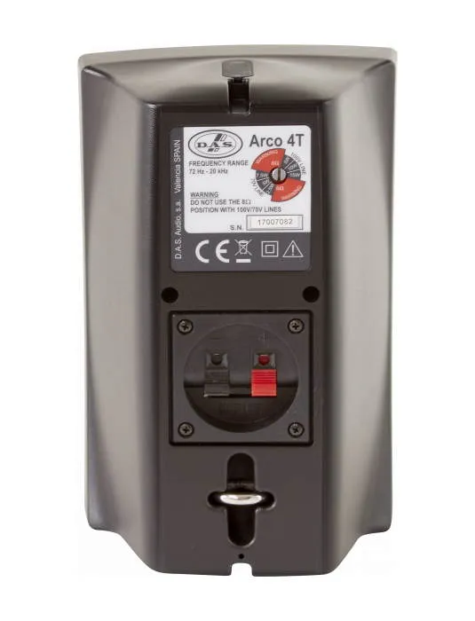 DAS Audio ARCO-4T — компактная пассивная акустика с купольным драйвером для высоких частот и четырёхдюймовым динамиком для низких. Встроенный трансформатор позволяет использовать систему с трансляционными линиями и низкоомной нагрузкой.