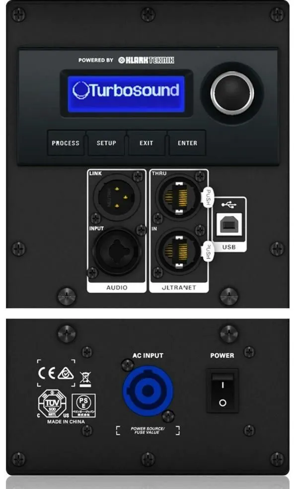 Есть балансный XLR-вход, XLR-выход для подключения дополнительных систем и USB-порт для дистанционного управления. Акустическая система подключается через ULTRANET с помощью etherCON-разъёмов.
