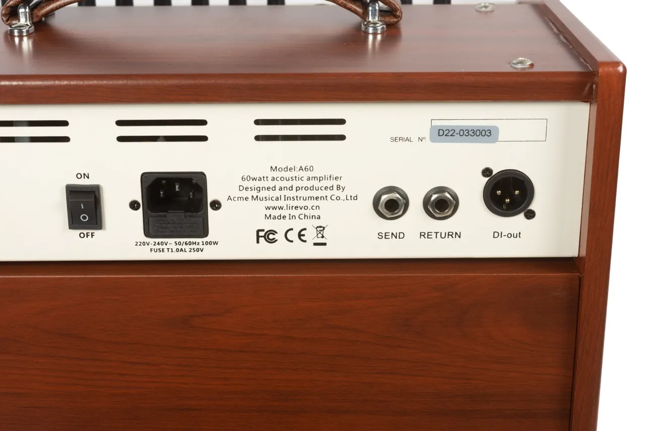 Акустический комбоусилитель LiRevo A60 имеет микрофонный и инструментальный каналы, каждый из которых оснащен комбинированным XLR/6.35 разъемом: вход 6,35 - для передачи линейного монофонического или стереофонического сигнала с низким сопротивлением, а вход XLR -для профессиональной передачи сбалансированного аудиосигнала на большие расстояния с минимальными потерями.