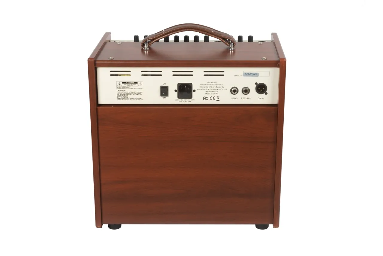 С помощью акустического комбо LiRevo A60 возможно украсить голос певца эффектом реверберации, а игру гитариста - эффектами хоруса, реверберации и делэя. Гибкая система управления позволяет комбинировать гитарные эффекты с настройкой чувствительного 3-полосного эквалайзера, максимально расширяя ди