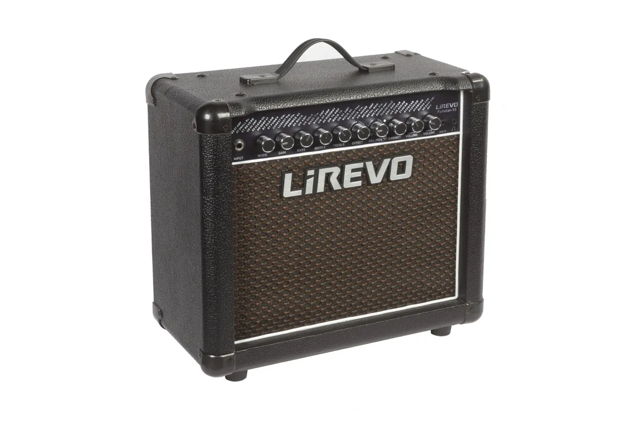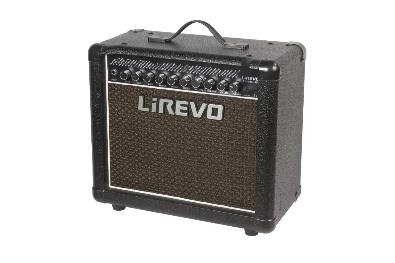 Моделирующий гитарный комбоусилитель LiRevo Fullstar-15 мощностью 15 Вт с 32 моделями усилителей, 8 моделями кабинетов, 8 звуковыми эффектами и возможностью подключения футсвитча.