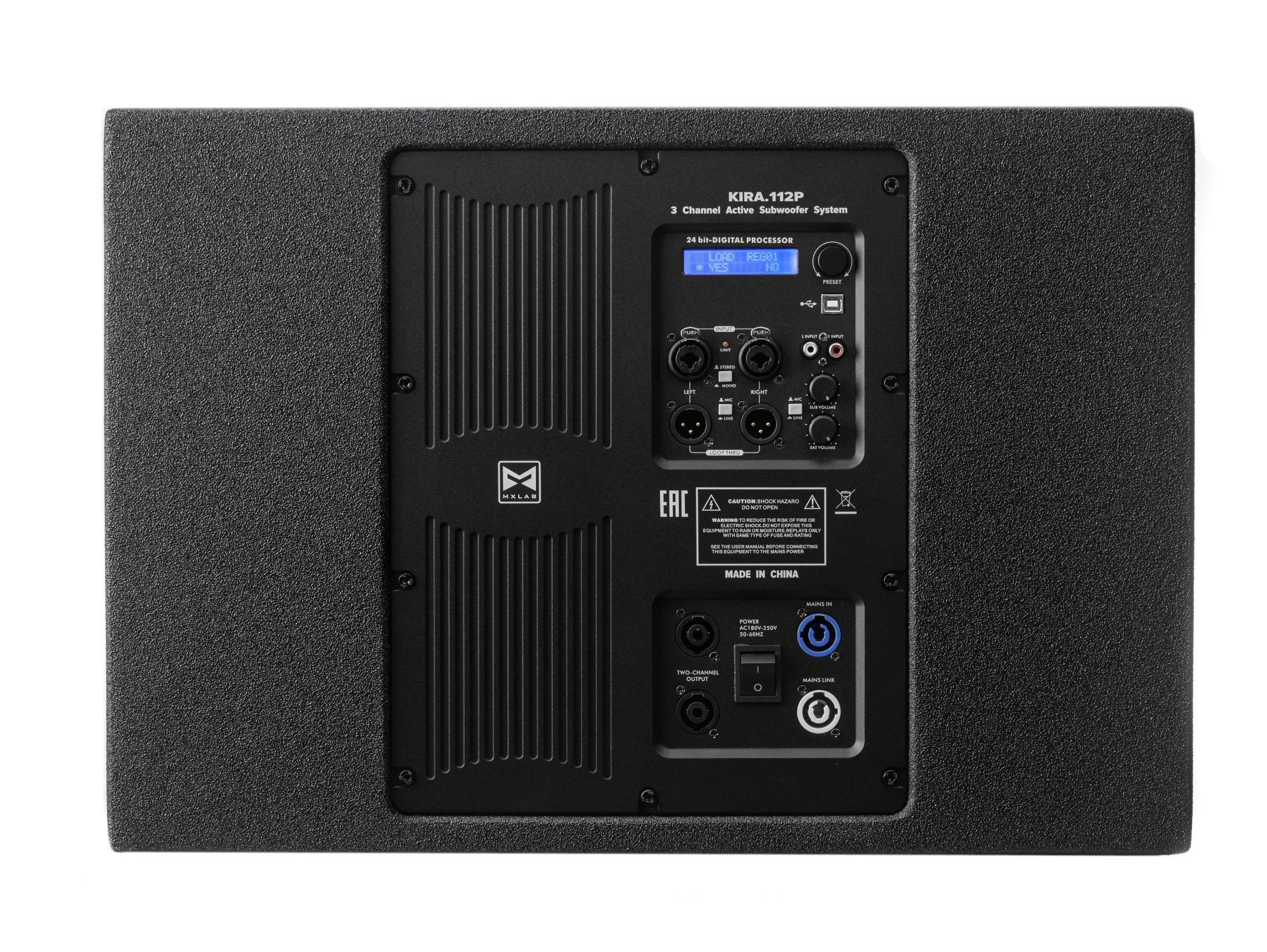 Встроенные функции DSP позволяют использовать KIRA112P даже без внешних спикер процессоров. Все необходимое есть на борту, и у вас получится интегрировать сабвуфер даже в масштабные комплекты. Также можно использовать готовые заводские пресеты, если необходимо использовать сабвуфер совместно с полнодиапазонными системами MX LAB KIRA 6 и KIRA 8. Используйте дополнительные каналы встроенного усилителя сабвуфера для подключения широкополосных систем.