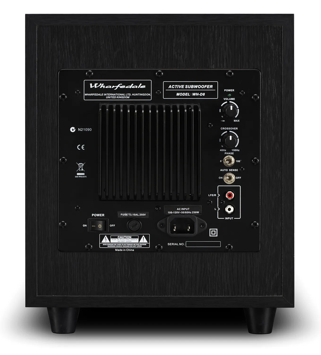 Активный сабвуфер Wharfedale WH-D8, цвет — чёрное дерево, мощность — 70 Вт.