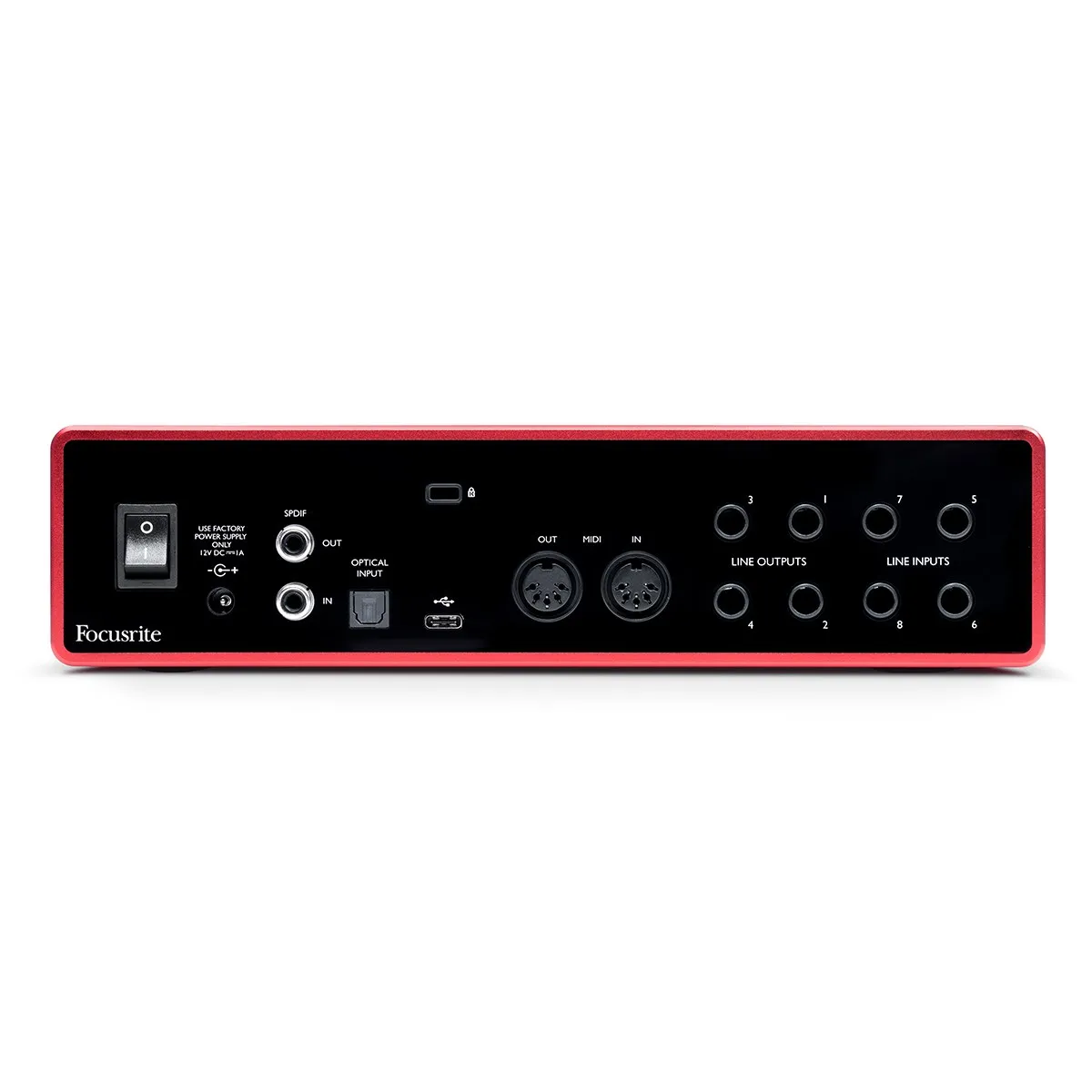 Описание аудиоинтерфейсаАудиоинтерфейс FOCUSRITE Scarlett 18i8 3rd Gen — настольный девайс с подключением USB типа C и протоколом USB 2.0. Поддерживает одновременное использование 18 входов и 8 выходов. Разрешение АЦП составляет 24 бит / 192 кГц. Имеет 4 предусилителя и 4 пэда, поддерживает фантомное питание. Оснащён 2 инструментальными и 8 линейными входами, 4 аналоговыми выходами и 2 выходами на наушники. Поддерживает переключение между акустическими системами через ПО, а также имеет входы и выходы S/PDIF, ADAT и MIDI.