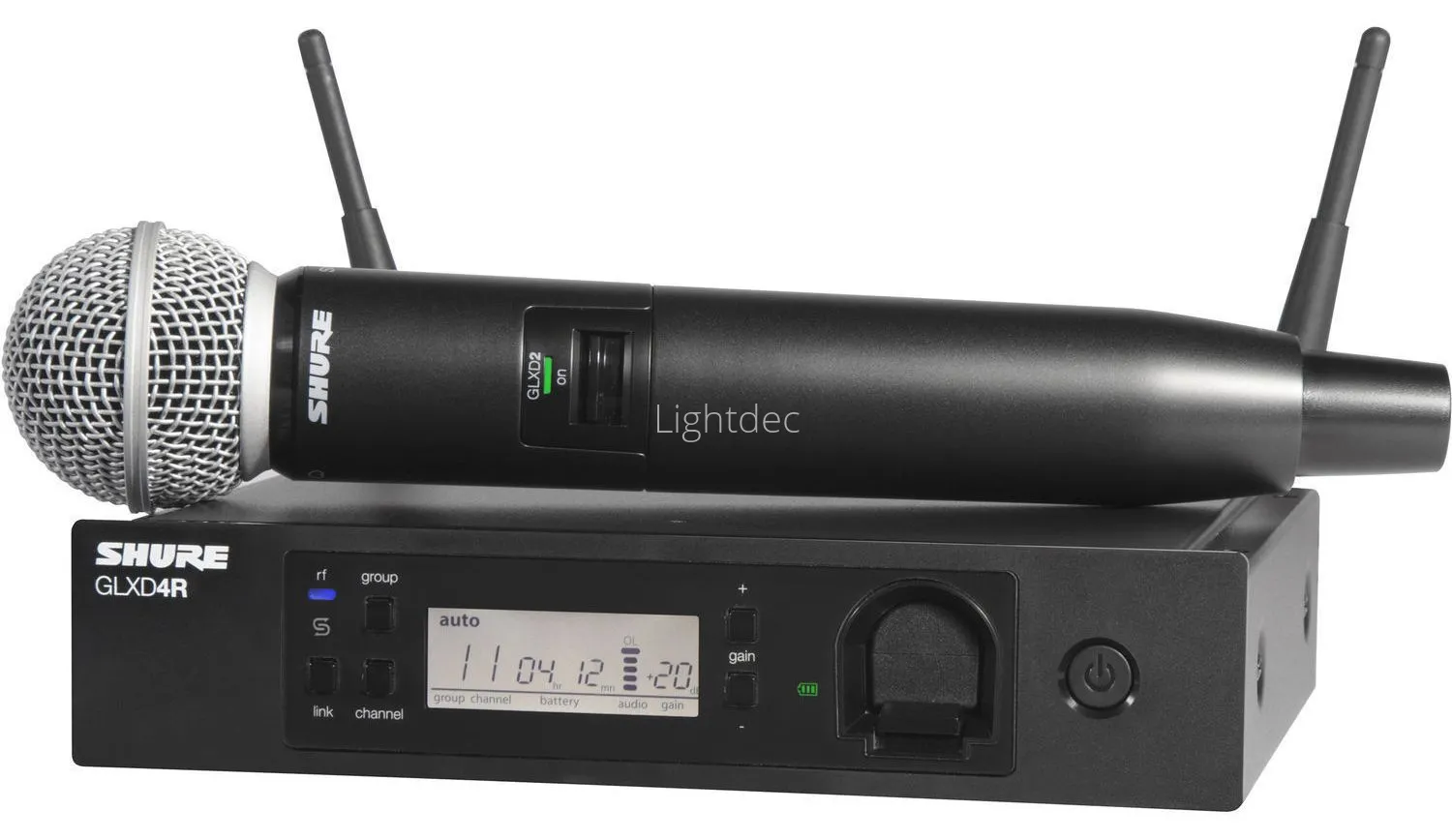 - Данная конфигурация включает в себя беспроводной приемник GLXD4 и ручной передатчик GLXD2/SM58.