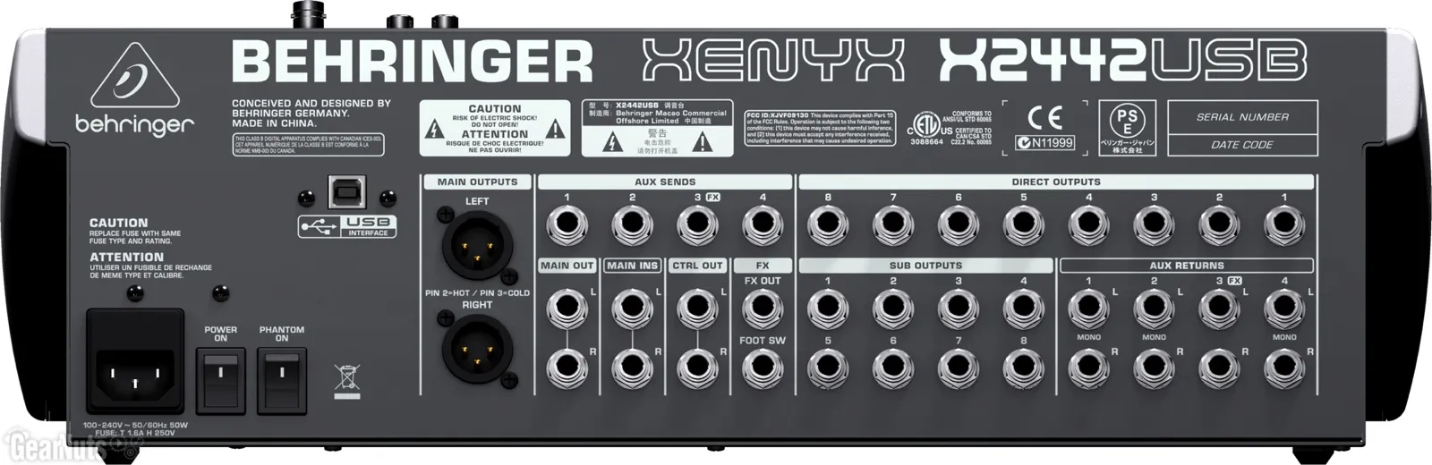В BEHRINGER X2442US находится импульсный источник питания "Planet Earth", который автоматически подстроится под напряжение сети. Он обеспечивает воспроизведение звука без шума и минимальное потребление энергии.