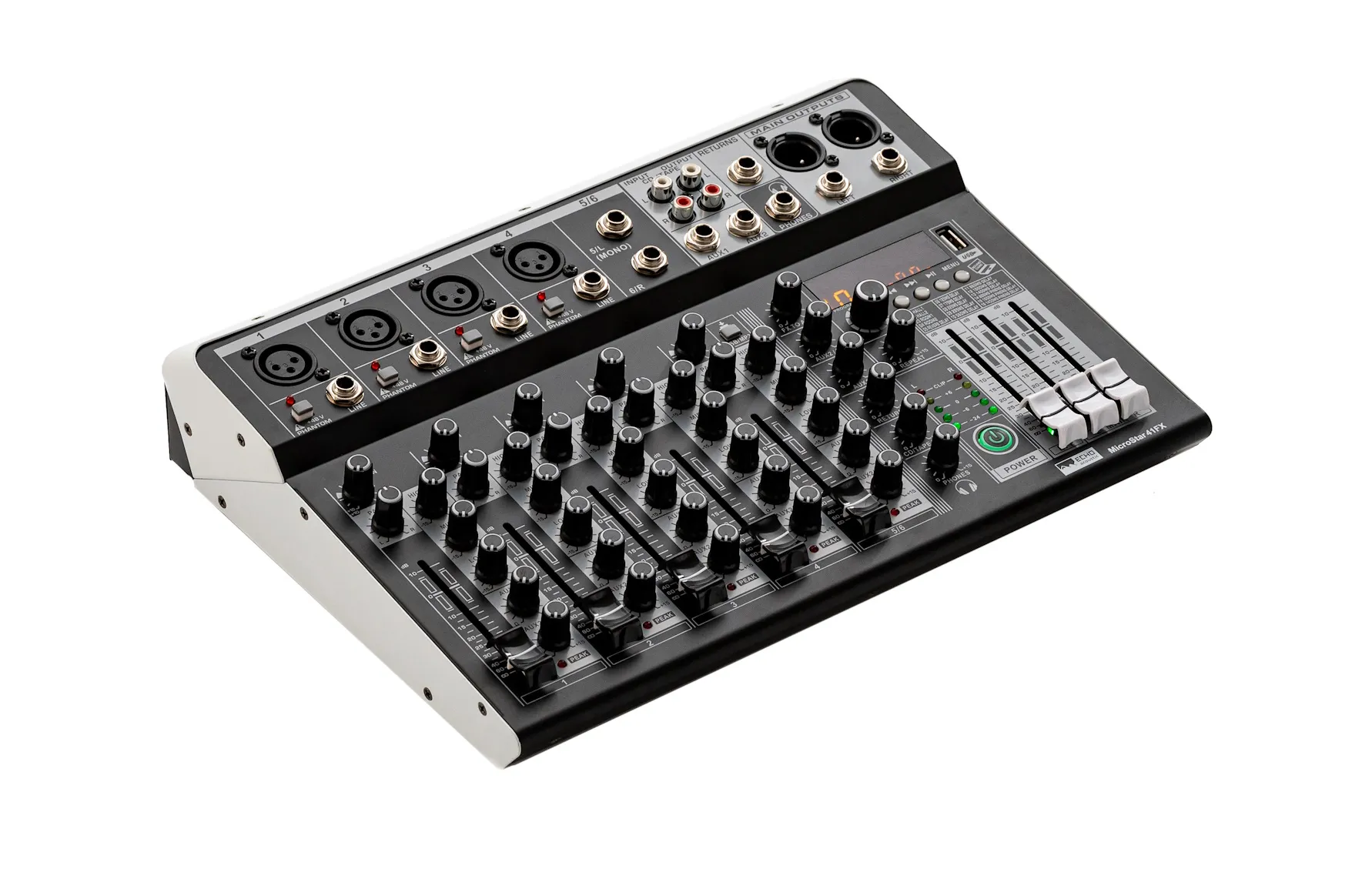 Echo Acoustic MicroStar 41FX компактный микшерный пульт, 4xMic/Line In, +48V, 1xSt.line In, 2 AUX Out, процессор эффектов, USB-A.Характеристики и возможности