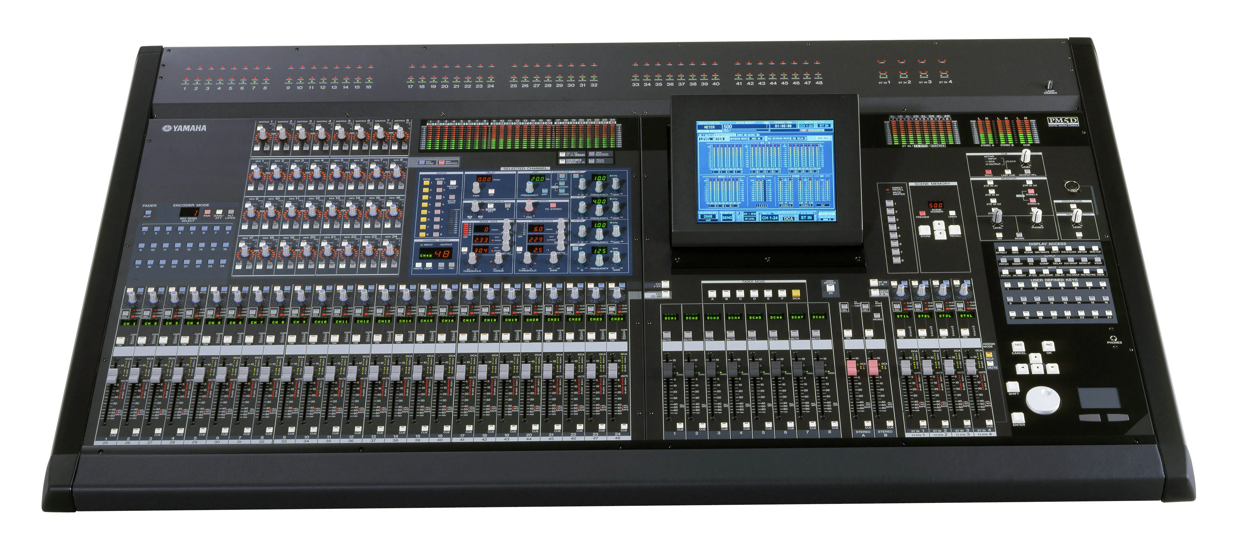 Управление консолью PM5D знакомо любому, кто уже работал с другими консолями Yamaha - в качестве примера можно привести секцию Selected Channel и Scene. Но в модели PM5D эти функции управления были улучшены и оптимизированы для живых выступлений, а акцент был сделан на быстрый и удобный доступ. Некоторые функции переняты от флагмана линии цифровых консолей PM1D, например, 25 клавиш, назначаемых пользователем, и восемь клавиш Direct Recall для восстановления шаблонов настроек. Функция "Fader Mode" позволяет назначать DCA-фейдерам различные операции, что обеспечивает быстро и централизованное управление параметрами, а с помощью клавиш Encoder Mode можно быстро назначить разные функции регуляторам каналов. Если вы предпочитаете традиционный метод идентификации каналов, между регуляторами каналов и клавишами пользователя есть место для подписи клавиш. Консоль способно полностью сохранять и восстанавливать все настройки с использованием функции "Recall safe", позволяющей избежать изменение определенных параметров.
