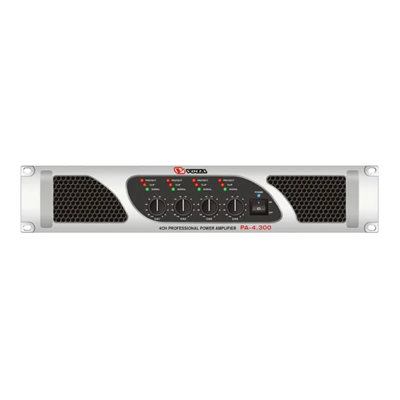 Volta PA-4.300 — четырёхканальный усилитель для профессионального использования. Подходит для фиксированных инсталляций и компактных передвижных комплектов.