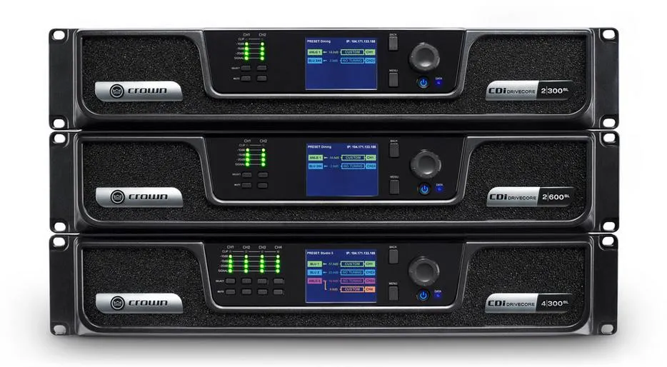 Crown CDi DriveCore 2|300BL — двухканальный усилитель для инсталляций. Мощность 300 Вт на канал при нагрузке 4 Ом. Поддерживает работу на линии 70/100 В и на низкоомной нагрузке 2–16 Ом. Встроен 32-битный DSP с эффектами и лимитерами. Управление через цветной дисплей или по сети. Поддерживается мостовой режим. Технология DriveCore обеспечивает стабильность и производительность. Предустановленные и пользовательские настройки. Защита от КЗ, перегрева и перепадов напряжения.