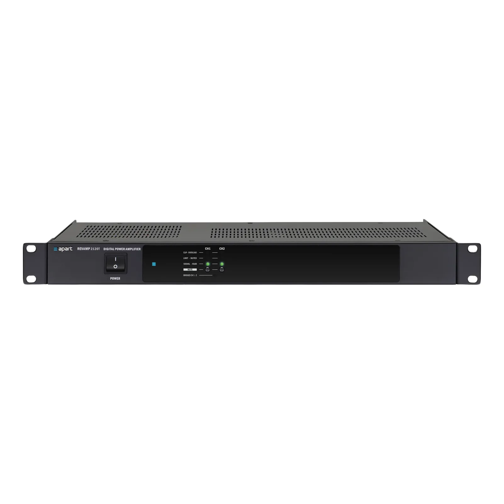 Описание усилителя BIAMP REVAMP2120TBIAMP REVAMP2120T — это профессиональный двухканальный цифровой усилитель мощности. Он обеспечивает выходную мощность 2 x 120 Вт при напряжении питания 100 В или 4 Ом, а в режиме «мостового» подключения — 240 Вт при 8 Ом. Усилитель оснащён массивным тороидальным трансформатором для защиты от внешних воздействий и помех. Благодаря конвекционному охлаждению без вентилятора, устройство работает бесшумно и не накапливает пыль. Светодиодный индикатор упрощает настройку.