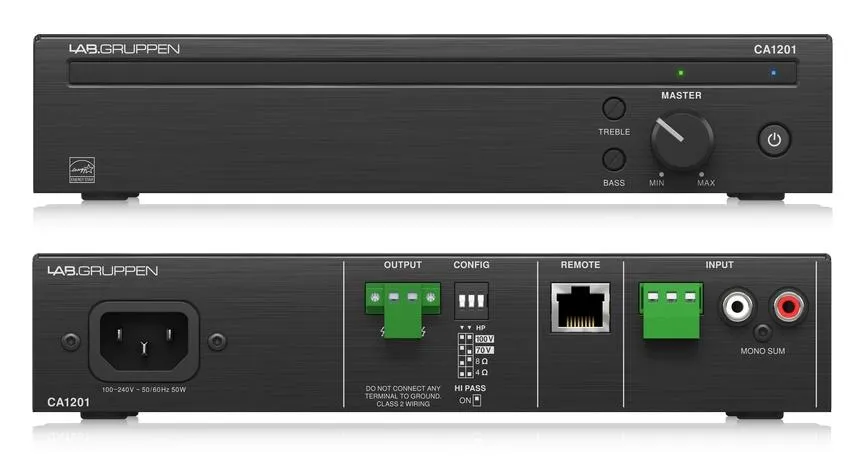 Lab.gruppen CA2401 усилитель инсталляционный, класс D, 1 канал, 4/8 Ом,70/100 B - 240 Вт, EQ 2 полосный, подключение настенного регулятора, безвентилляторныйСерия недорогих усилителей для фоновой музыки в кафе, ресторанах, бутиках и других публичных местах. Сочетают высокую надёжность, простоту использования и высокое качество звука. Модельный ряд представлен усилителями с одним и двумя каналами мощностью 60, 120 или 240 Вт
